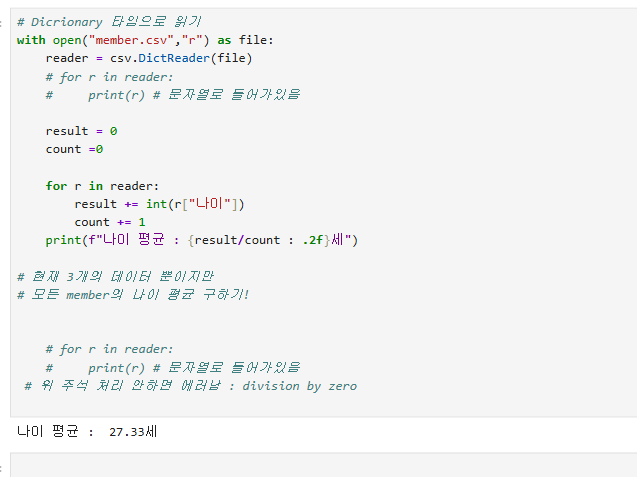 csv.reader() | csv 파일 읽기 (리스트 형태) |