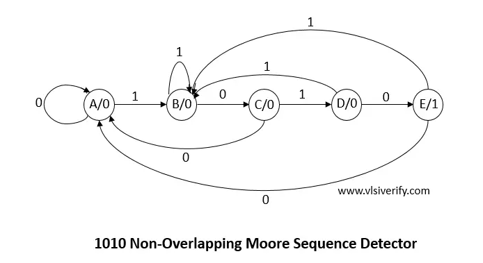 2.4) 1010 non-Overlapping Moore Sequence Detector