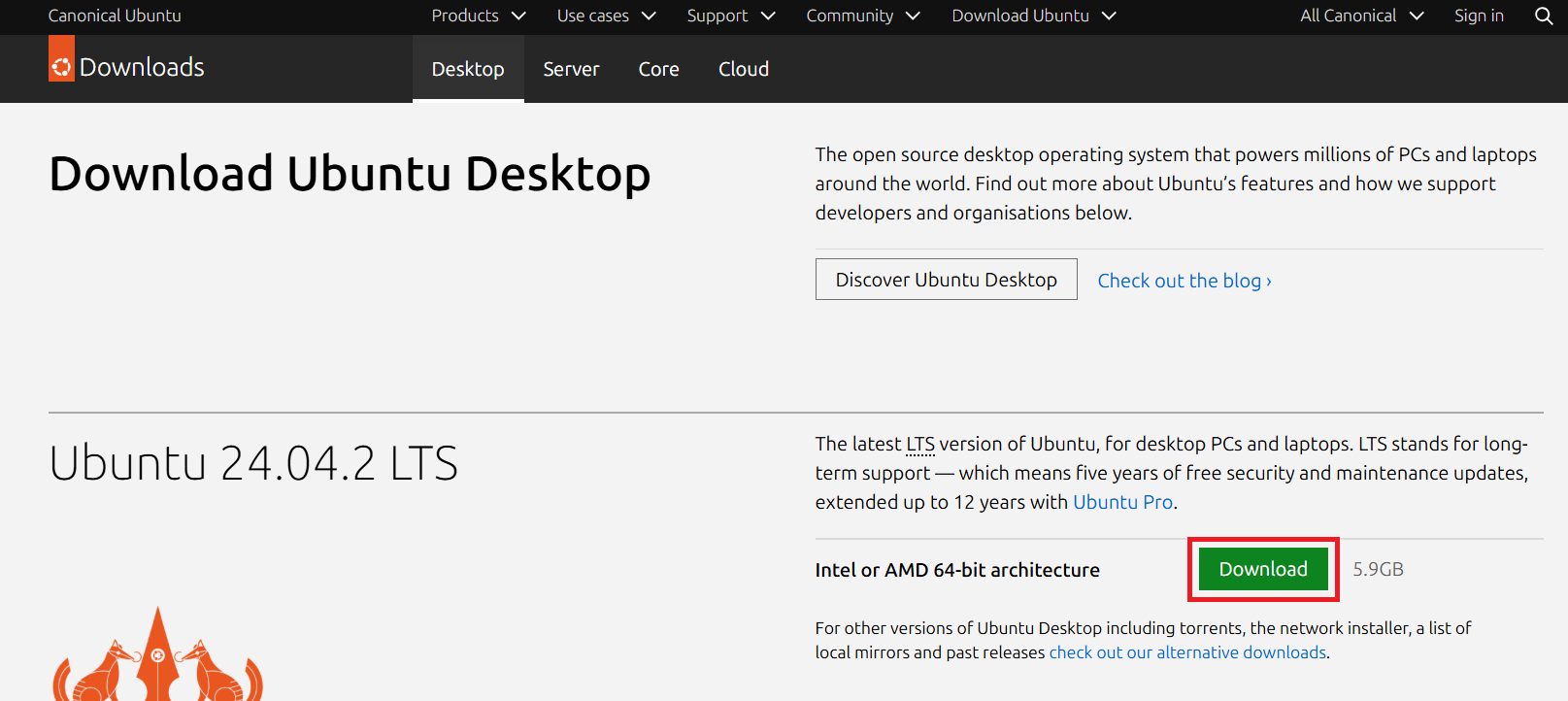 https://ubuntu.com/download/desktop 에서 download버튼을 클릭하여 iso 이미지를 내려받는다.