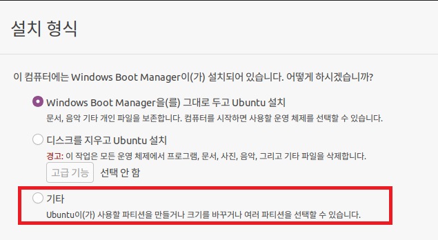 지난 포스팅에 이어 우분투OS를 설치한다.