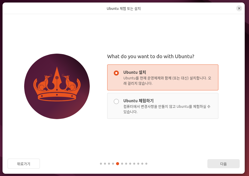 설치가 완료되면 자동으로 Ubuntu가 실행된다. 자동실행 되지 않는 경우 메인화면에서 Ubuntu를 선택하여 실행하면 된다.