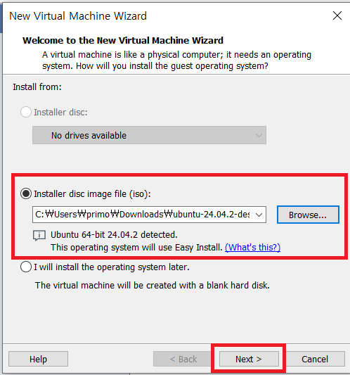 VMware가 이미 설치되었다는 전제 하에 Ubuntu 설치과정만 포스팅하였다.