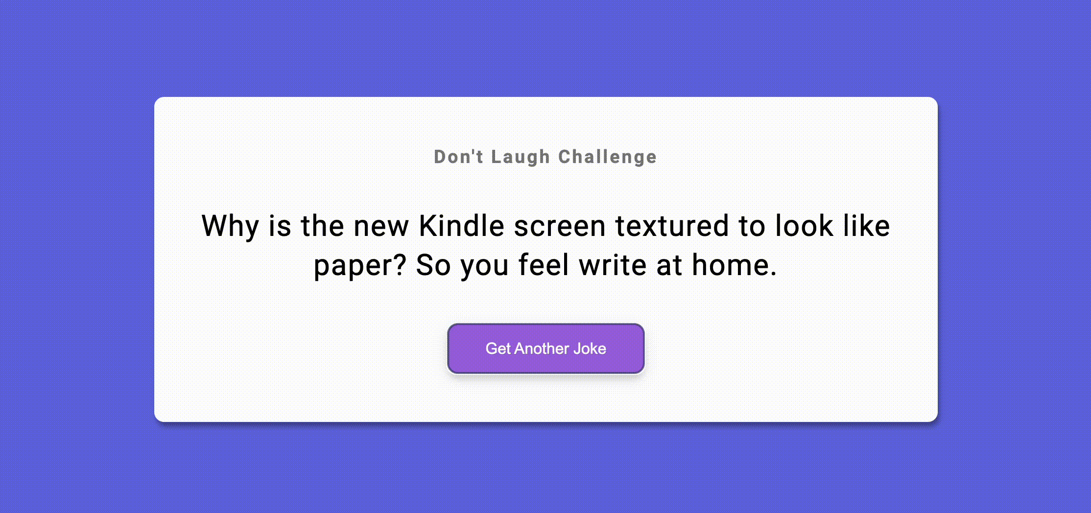 이번 프로젝트는 https://icanhazdadjoke.com/api 라는 API를 활용하여 미국식 농담을 화면에 랜덤으로 띄우는 것이다.