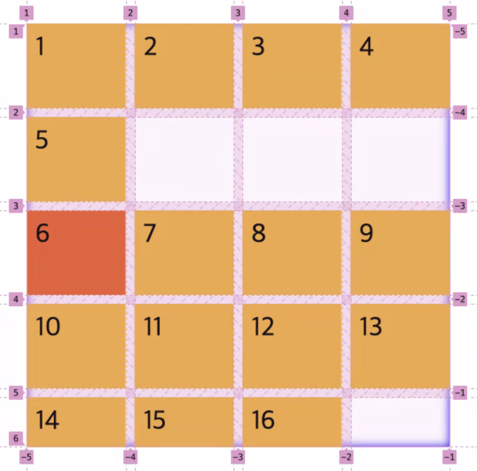 이럴 때는 column과 row 두개를 다 지정해주는 것이 좋다. 혹은 grid-row: auto / span 3 으로 진행하면 column이 1쪽으로 이동하는 것이 아니라 원래 자리 그대로에서 스팬(넓힐 개수)만 늘어난다.