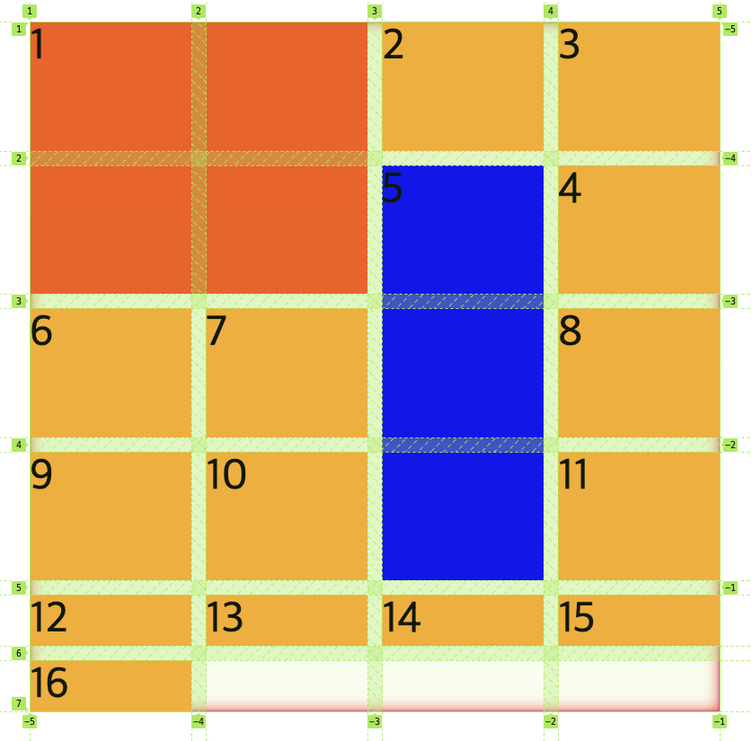 템플릿은은 4x4인데 컬럼 시작을 강제적으로 5를 하므로 5에서 시작하도록 하면서 마크업 순서를 유지하기 위해 칸을 비우고 배치한 뒤 나머지를 마크업 순서대로 배치하는 것이다.
