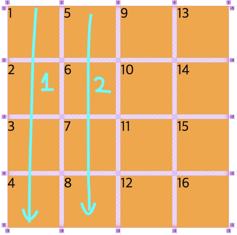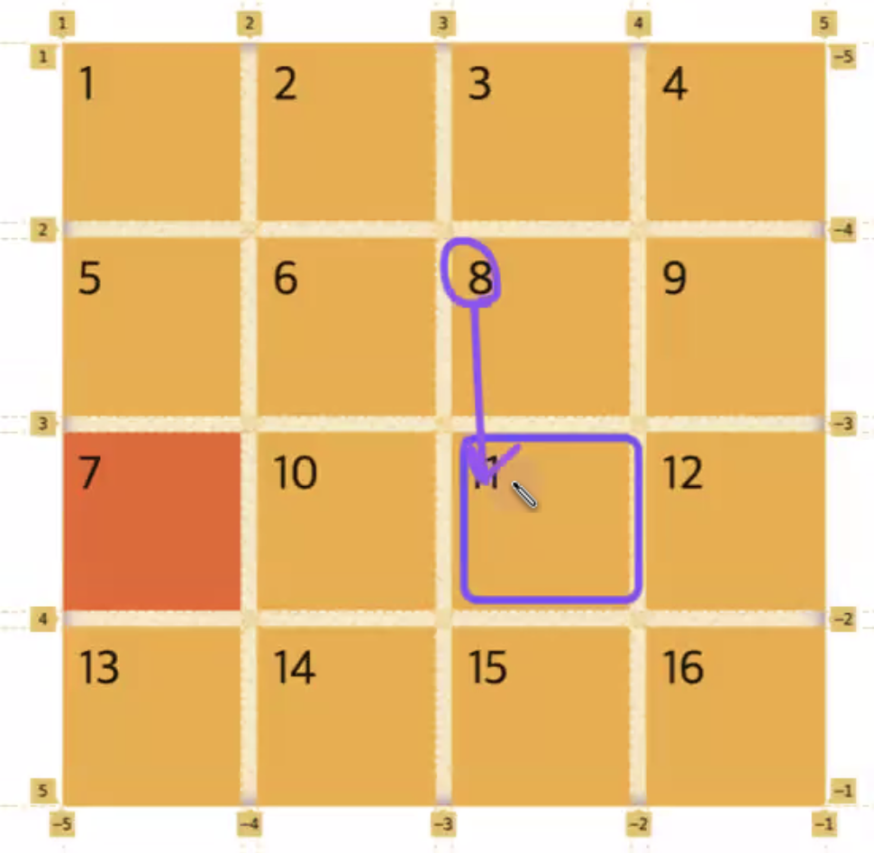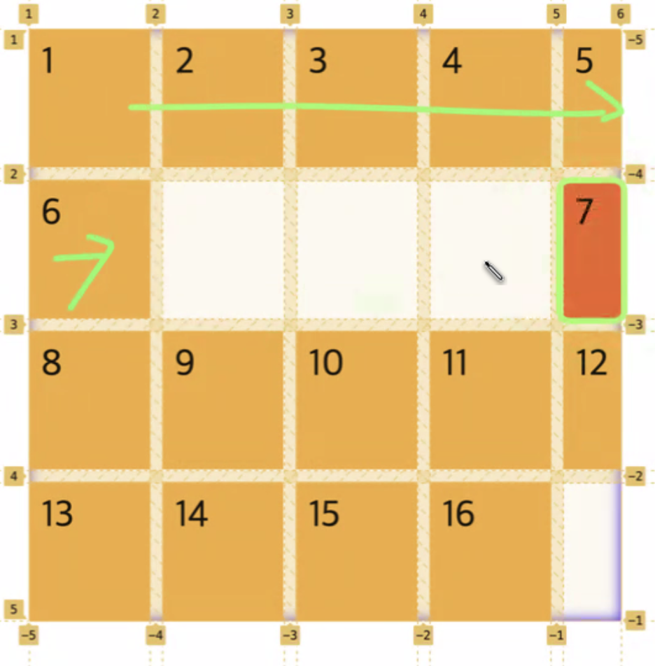 만약 7이 위의 사진이 아닌 11번의 위치로 갔다면 너무 복잡하고 꼬이기 때문에 column은 auto 이고 row만 값이 지정 되었다면 무조건 컬럼을 1로 보낸다.