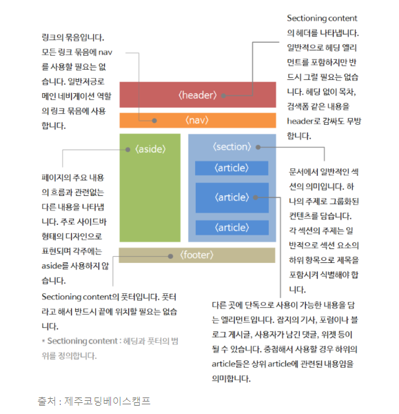 일반적으로 연관성 있는 문서의 구획을 나누고자 할 때 사용하는 요소이다.