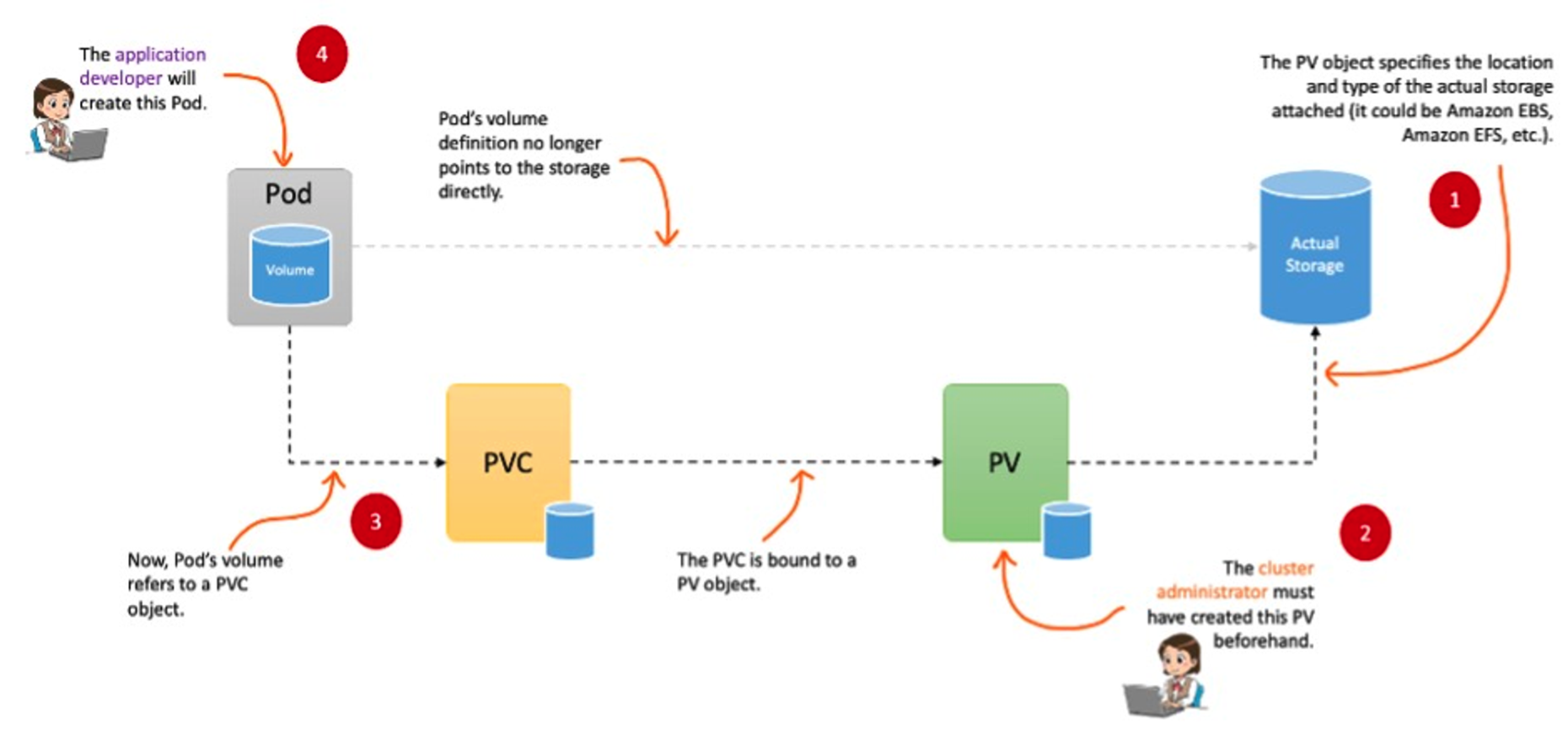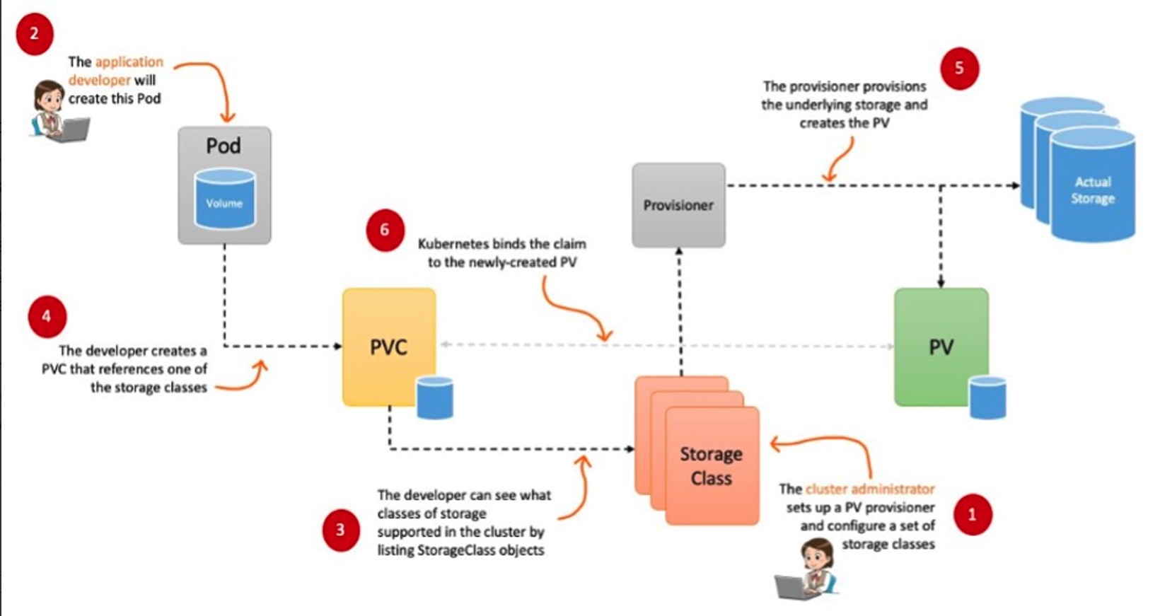 파드가 생성될 때 자동으로 볼륨을 마운트하여 파드에 연결하는 기능을 동적 프로비저닝(Dynamic Provisioning)이라고 함