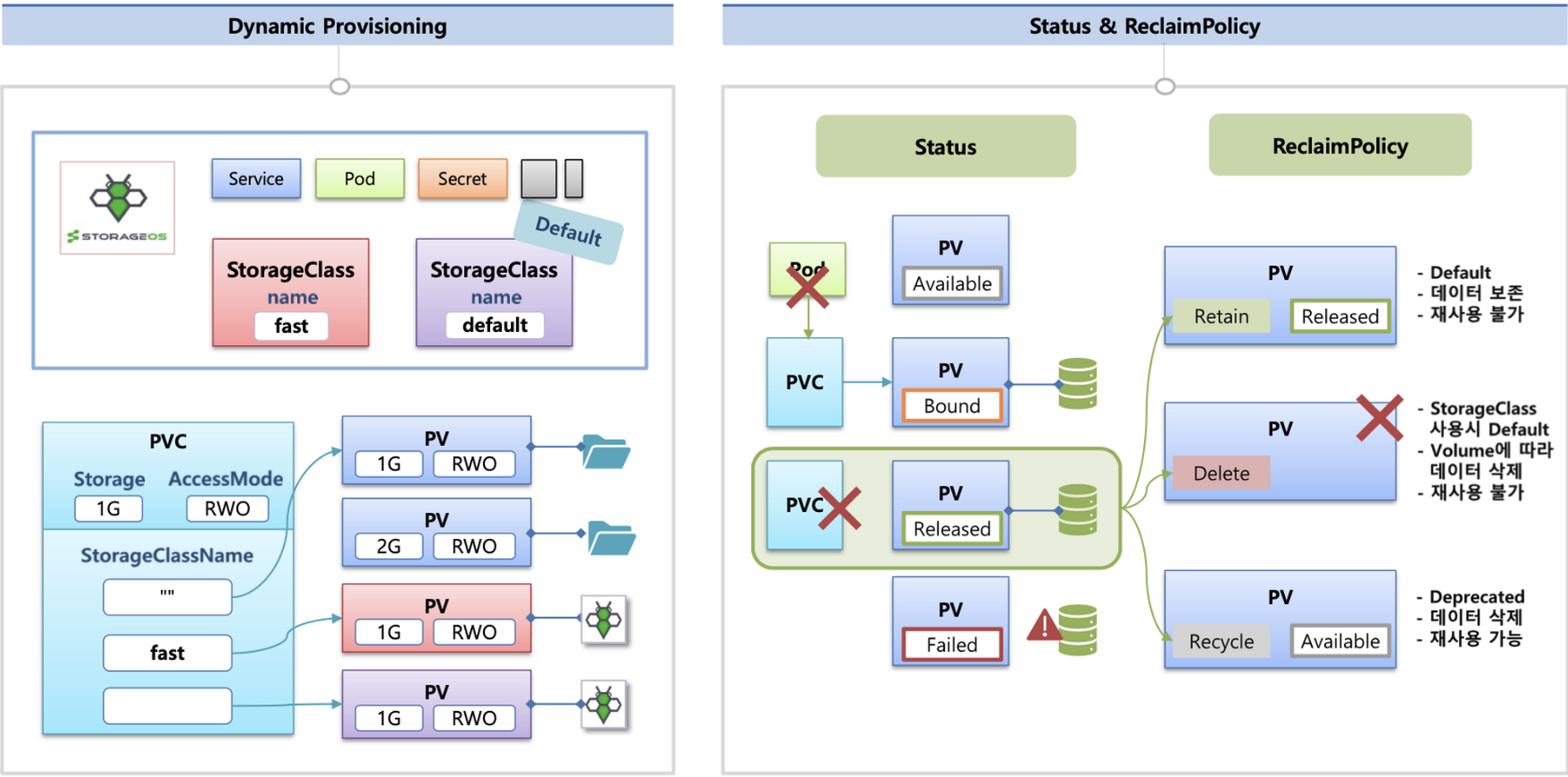 동적 프로비저닝 & 볼륨 상태 , ReclaimPolicy