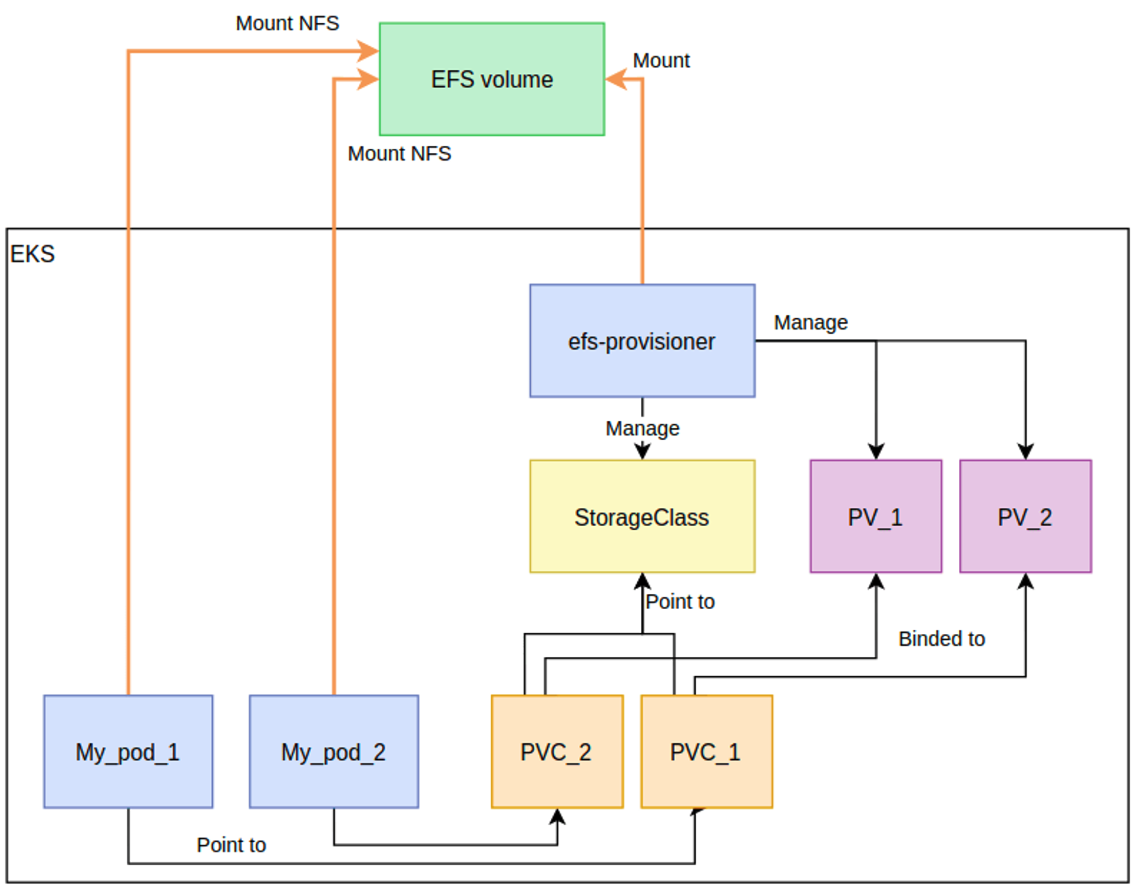 fs-036a45de37ff1463b.efs.ap-northeast-2.amazonaws.com:/ on /mnt/myefs type nfs4 (rw,relatime,vers=4.1,rsize=1048576,wsize=1048576,namlen=255,hard,noresvport,proto=tcp,timeo=600,retrans=2,sec=sys,clientaddr=192.168.1.100,local_lock=none,addr=192.168.1.114)