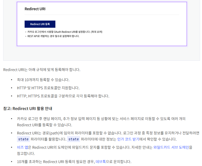 카카오의 경우에도 친절하게 가이드를 안내하고 있다.