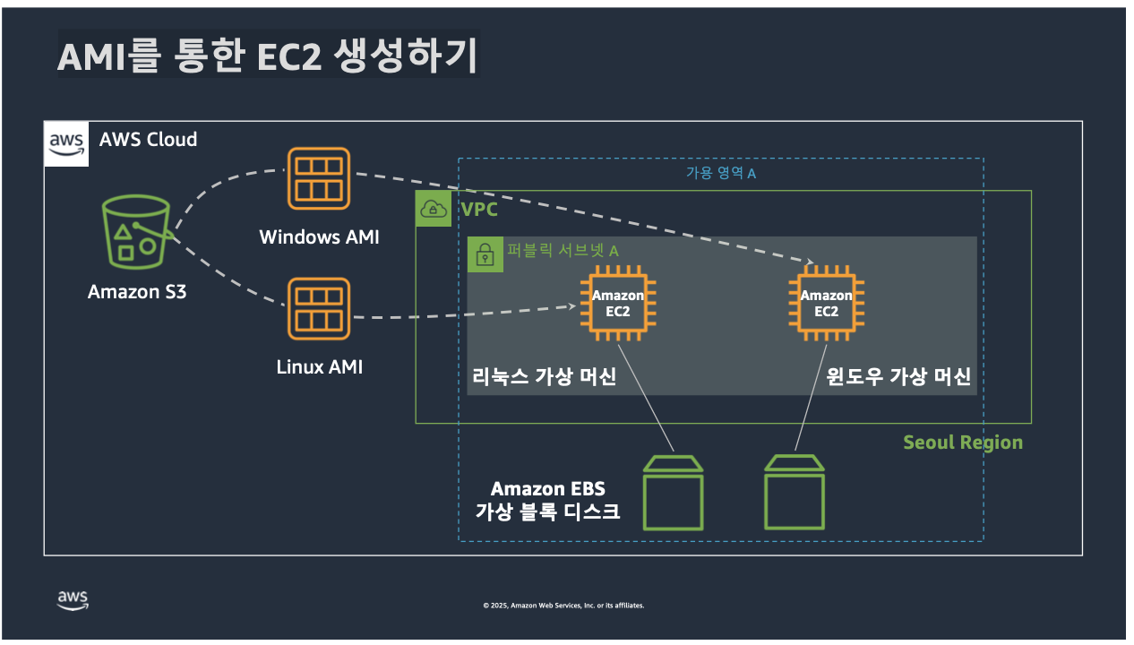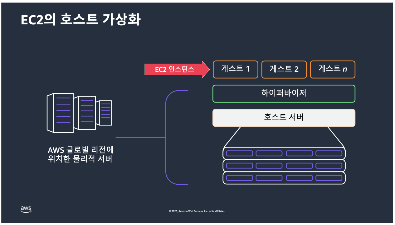 - EC2는 전세계적 AWS 리전의 물리적 서버에 호스트 됩니다.