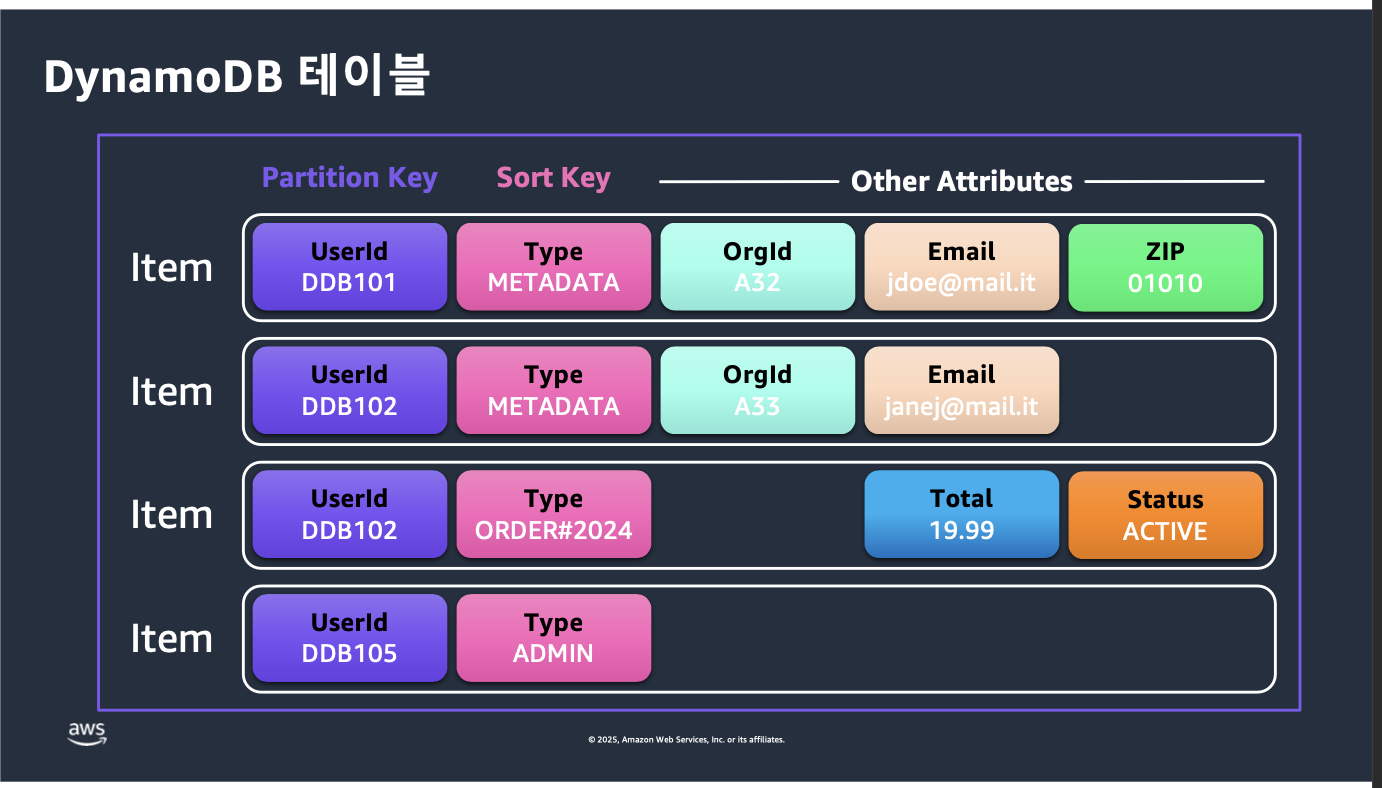 DynamoDB는 상황에 따라 테이블을 짠다.