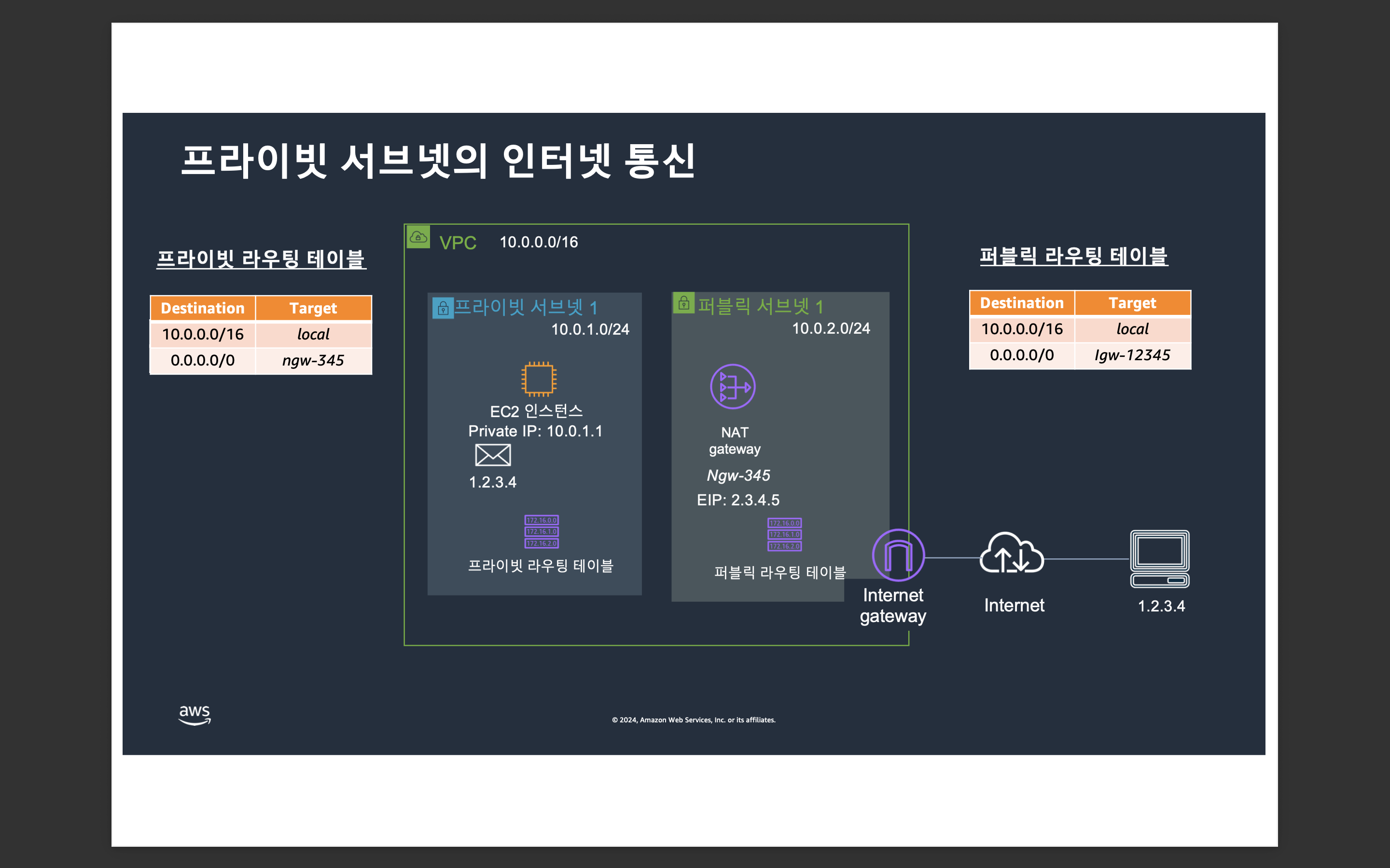 - 프라이빗 서브넷 아웃바운드 통신용 NAT 게이트웨이 활용