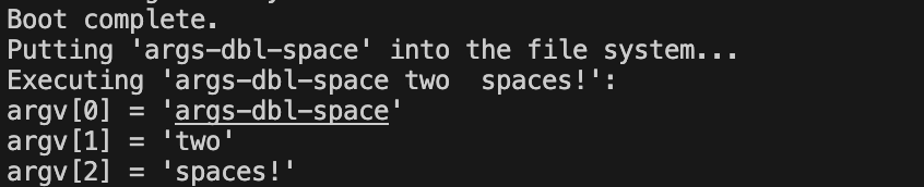 테스트 케이스 args-dbl-space ****같은 경우에는 더블로 오는 NULL에 대해 하나의 NULL로 처리를 하는가를 보는 테스트로 파싱이 제대로 된다면 문제 없이 넘어가집니다. 왜 그런지는 lib / user / string.c 에 있는 strtok_r 함수의 작동원리를 확인해보세요. 주석이 친절해서 금방 알아볼 수 있습니다.