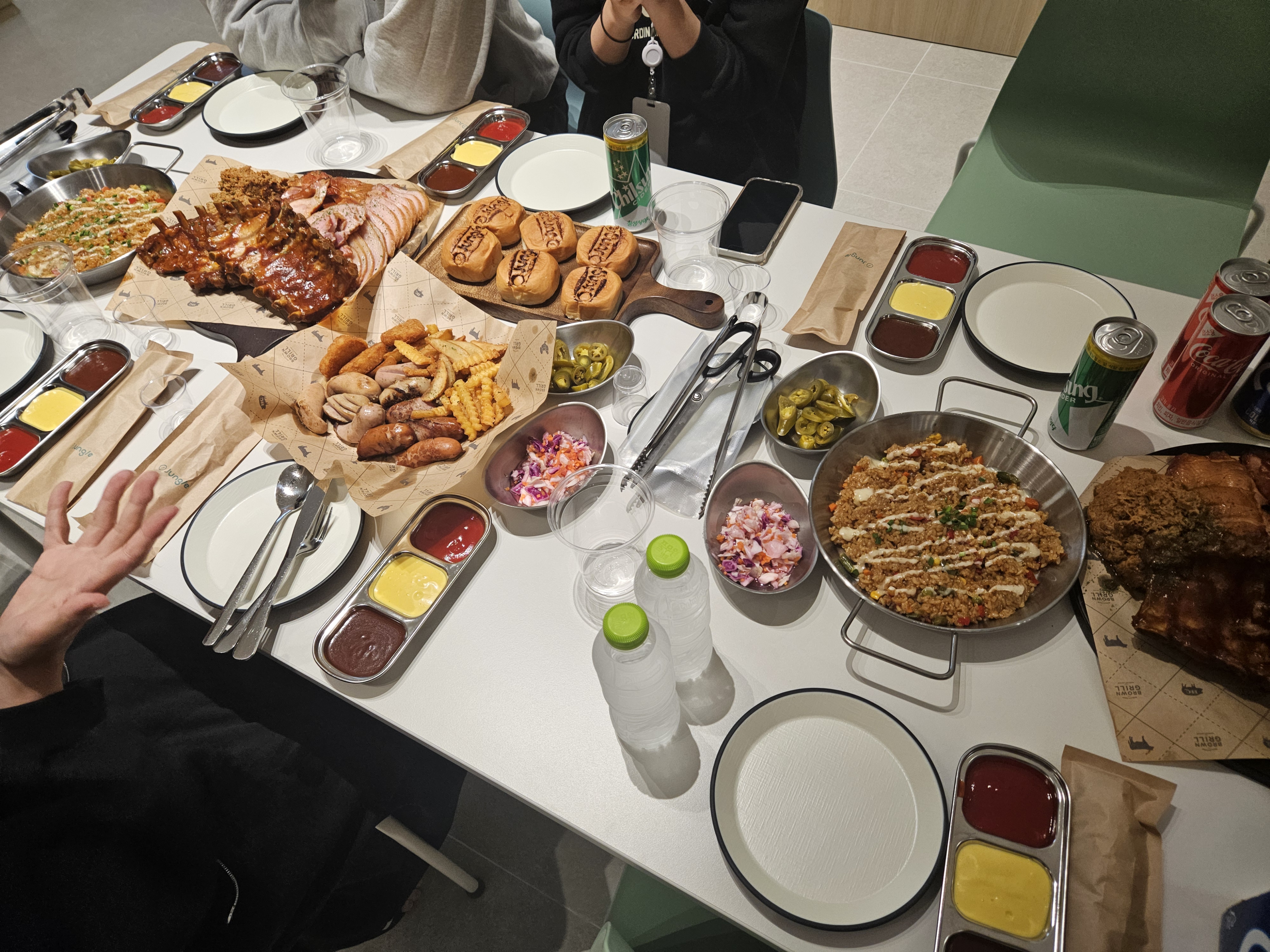 오늘 19시에 회식이 있다고 합니다. 회식하기 전에 동료 피드백을 하면 좋을 것 같다. 오늘은 바베큐 플래터이다.