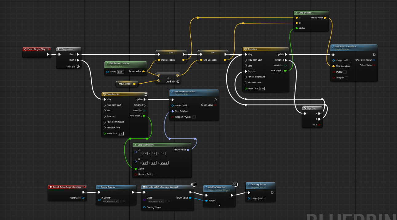 그냥 Timeline 설정을 하면 딱딱하게 위 아래로 움직이겠지만 내가 원하는건 게임의 아이템 오브젝트 처럼 둥둥 떠다닌다는 느낌을 줘야 했다. 그래서 타임라인 그래프를 곡선으로 만들고 Then 2 에서 360도 Rotation을 Timeline에 Loop을 걸어 계속 돌아가게 했다.