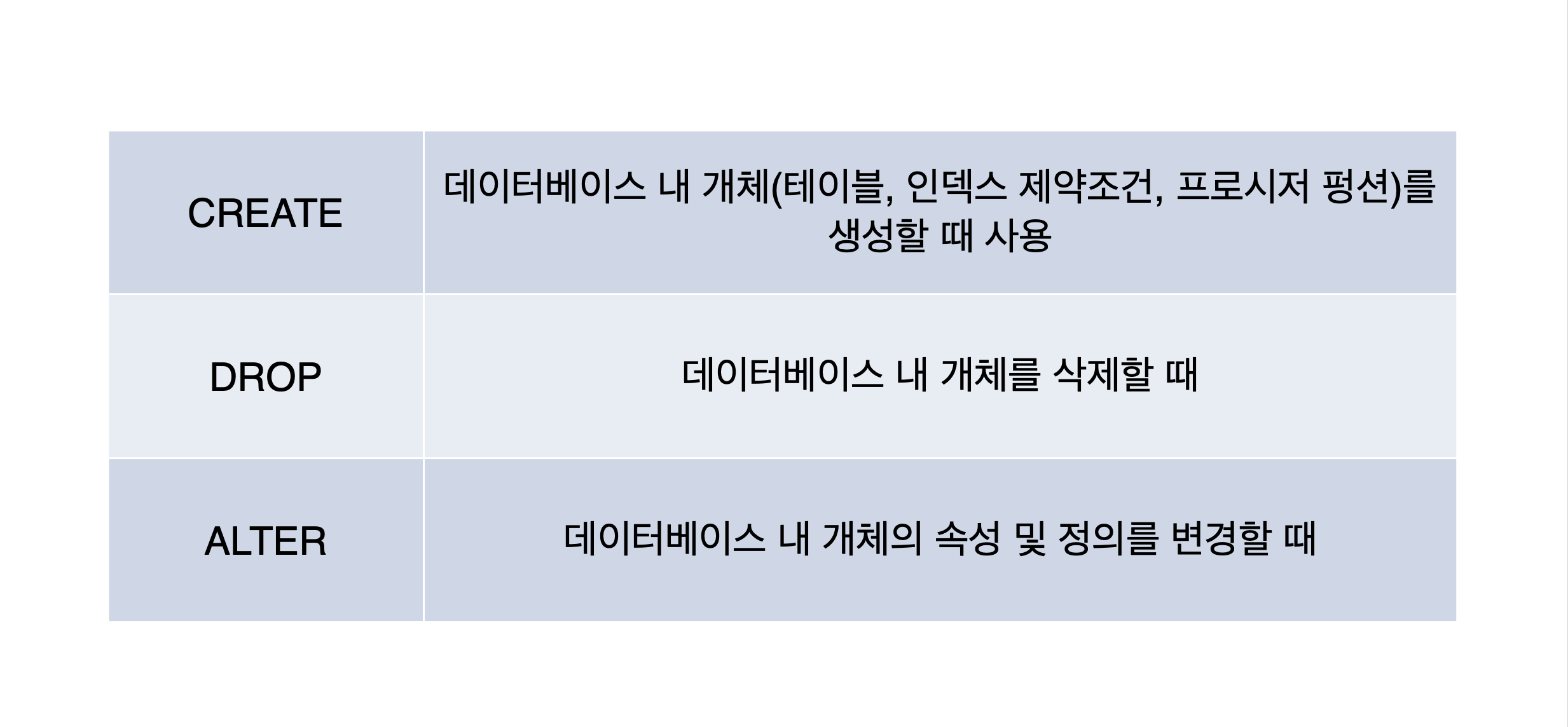 DDL: Data Definition Language(데이터 정의 언어)