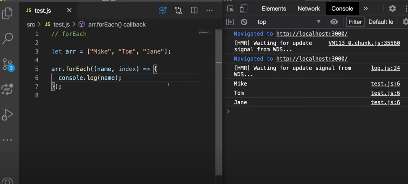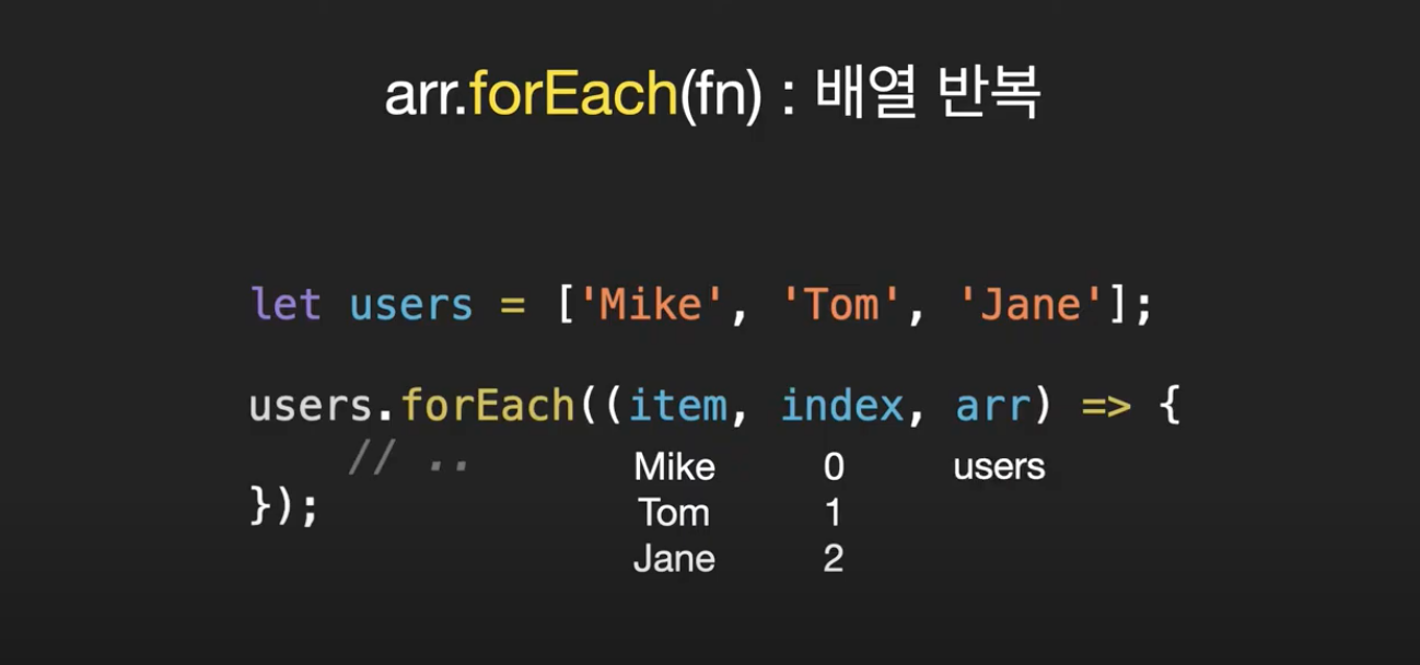 배열을 반복하는데, forEach는 함수를 인수로 받습니다.