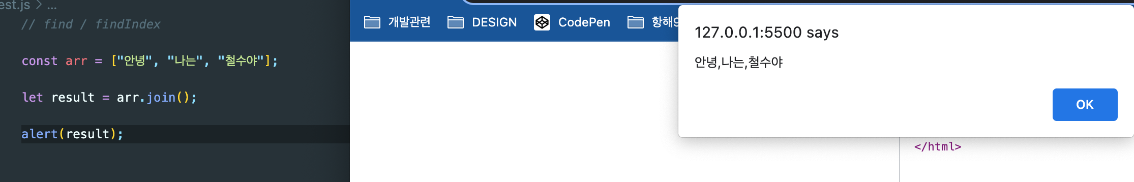 배열이 쉼표로 구분되서 합쳐진다.