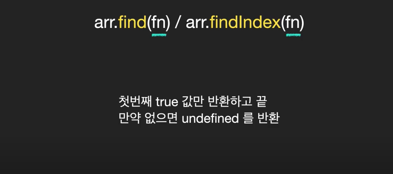 find는 값을 찾아내고 findIndex는 조건에 맞는 Index 값을 찾아낸다.