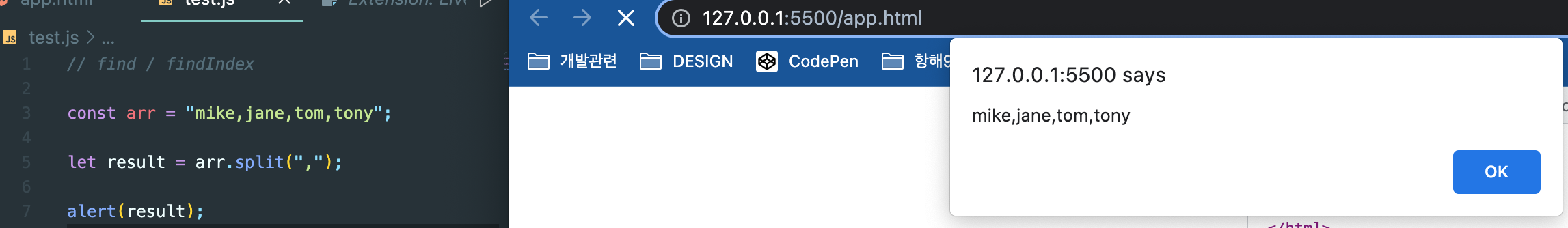 문자열을 나눠서 배열로 만들어 줍니다.