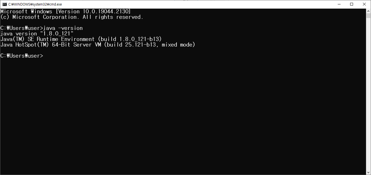 명령 프롬프트에 java -version 을 입력하고 엔터를 치면 이렇게 자바의 버전을 알려준다.