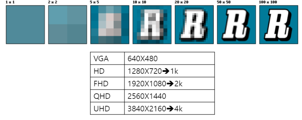 • 픽셀은 이미지를 구성하는 정보의 가장 작은 단위이다.