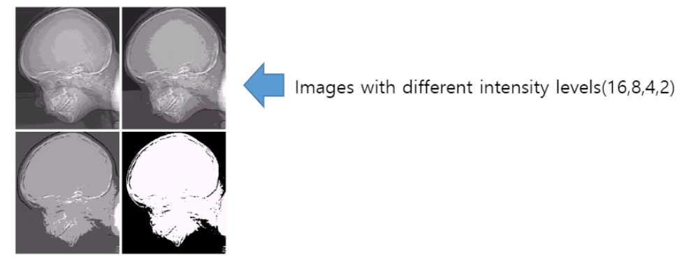 • Intensity level은 주로 2의 제곱으로 표현된다. L = 2^k