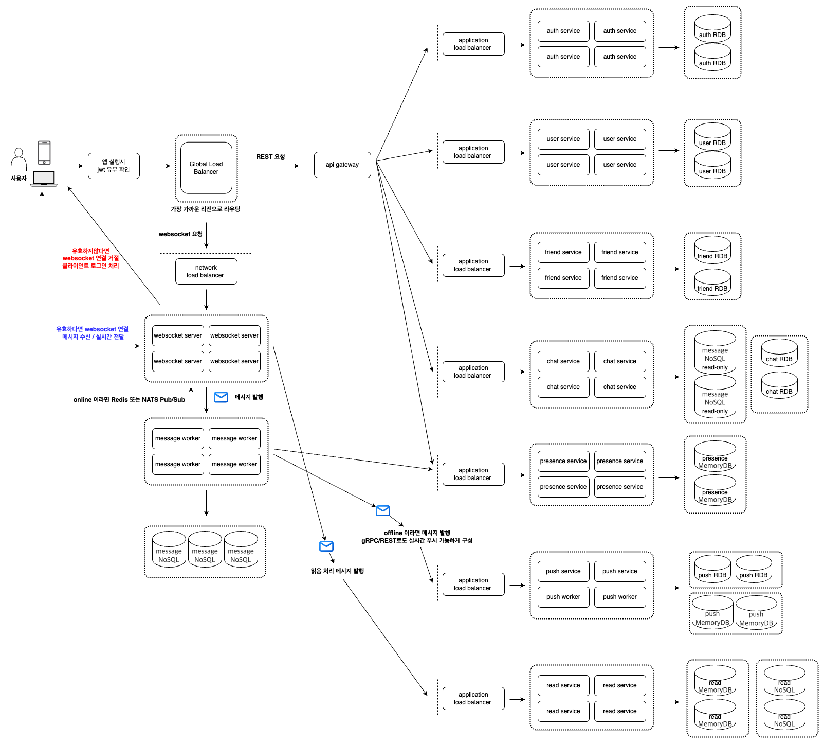 - 실시간 메시지 전송 및 수신 (지연시간 100ms 이하)