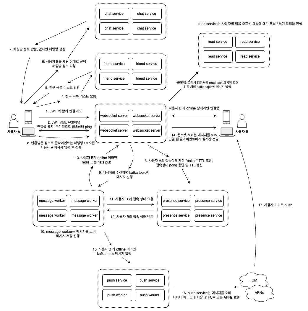 서비스가 방대하기에 실제 테스트 구현은 채팅 메시지만 구현해볼 예정입니다.🙂