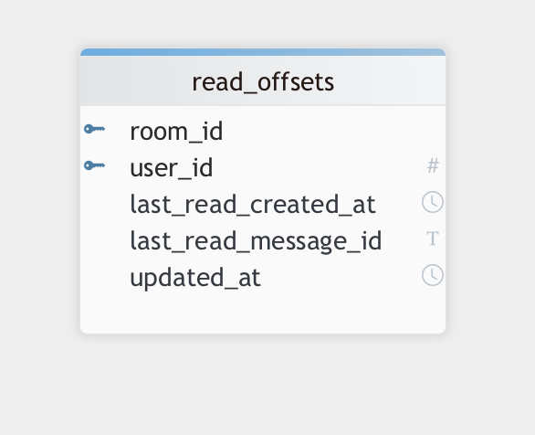 5. 읽음 오프셋은 message_id(TIMEUUID)와 created_at을 함께 저장합니다.