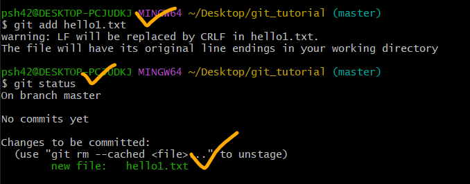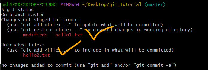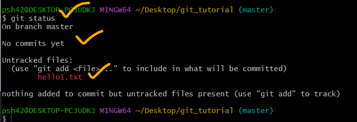 - 추적되지 않은 파일은 hello1.txt