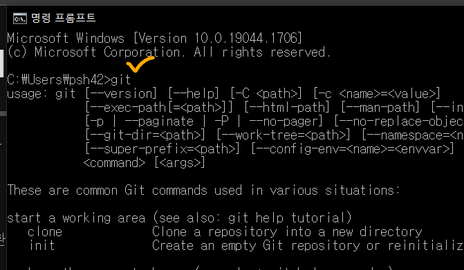 - 설치하고 cmd에 git 처서 다운됐는지 확인