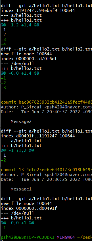 git diff 로 이전버전과의 차이점을 검토할 수 있음.