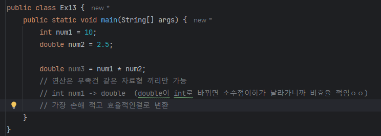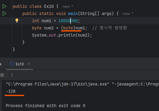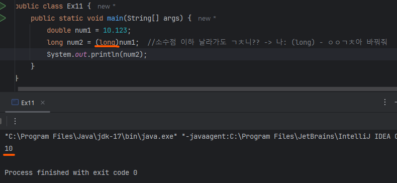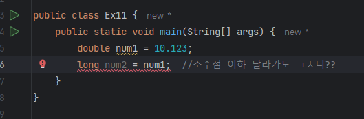 ㄴ 유실 없어도 명시적 형변환 해줘야 하넹