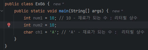 변수라는 공간에 값을 담으려면 값이라는 것도 존재해야 담을 수 있다