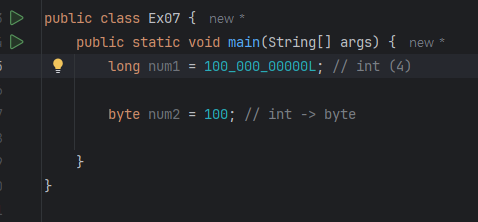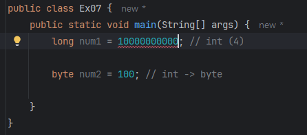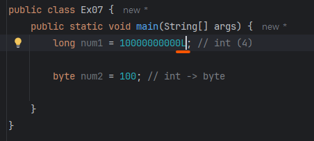 -> 처음부터 long으로 할당을 하려면 숫자 끝에 l ,L 을 붙여주자