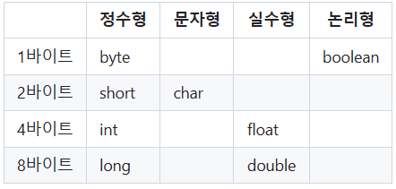 int : 4바이트(32비트) -2^31~2^31 - 1