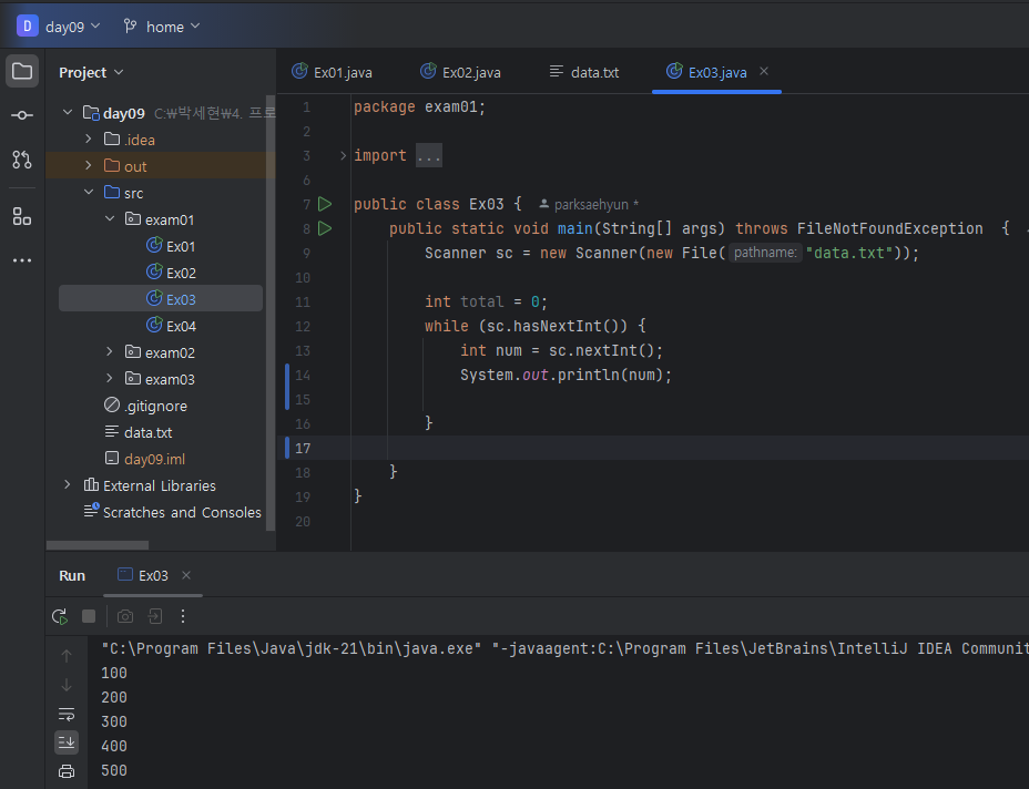 ㄴ int num = sc.nextInt(); : sc.nextInt()가 data파일에 있는 Int값을 하나씩 하나씩 읽어오는 걸 int num이라는 변수에 담음