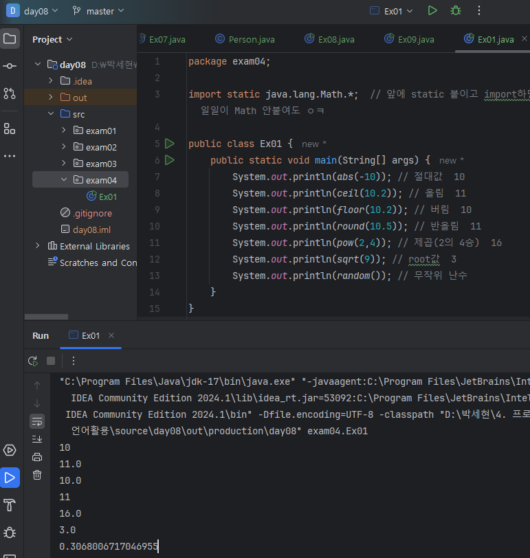 ㄴ import안하면 Math.abs.(-10) 이렇게 작성해야 함