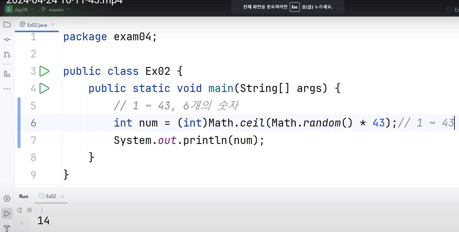 //int num = (int)(Math.random() * 43) + 1; // 1 ~ 43