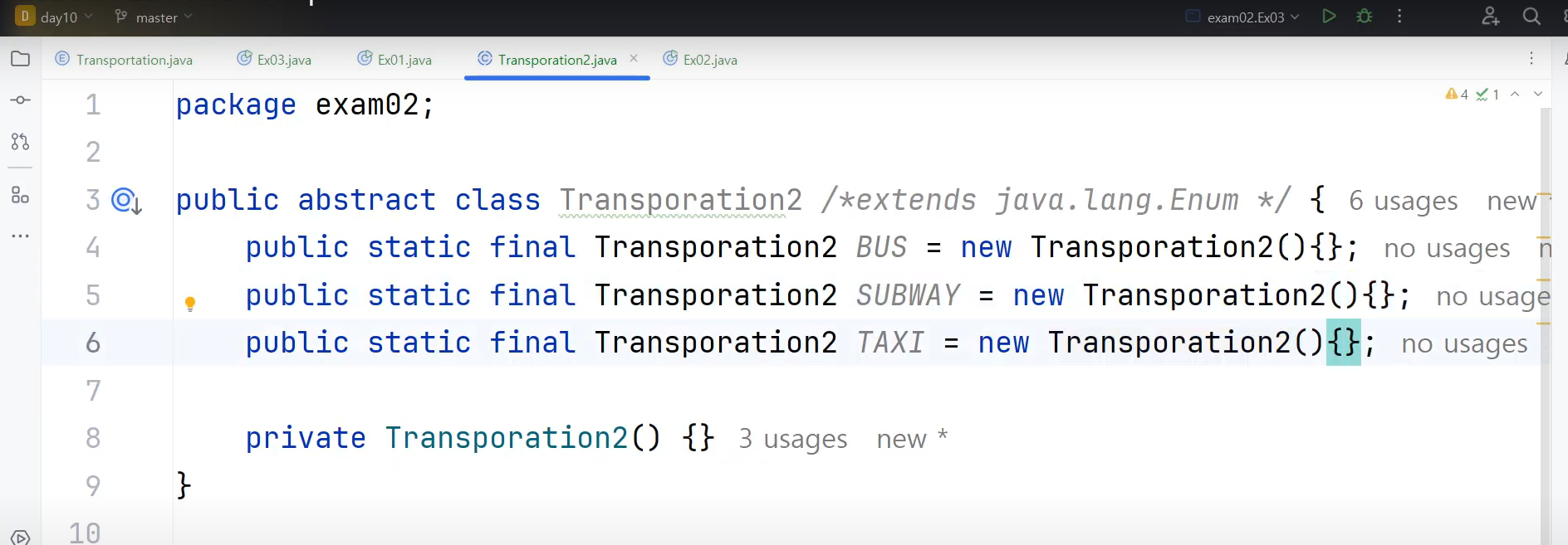 public static final SUBWAY = new Transportation();