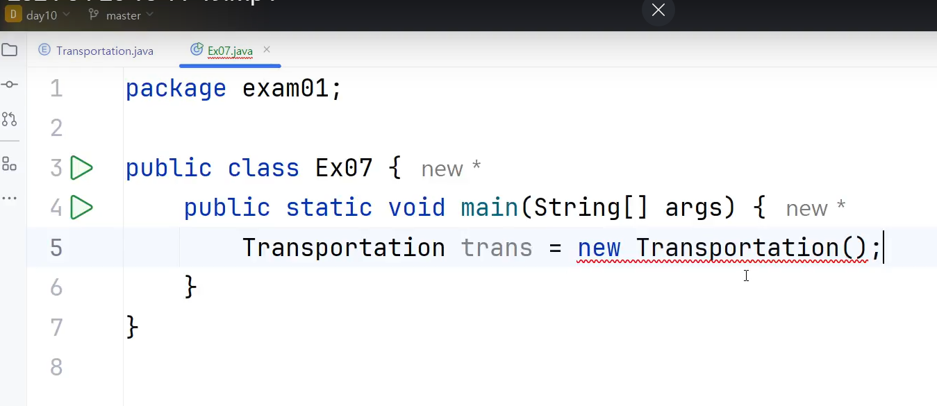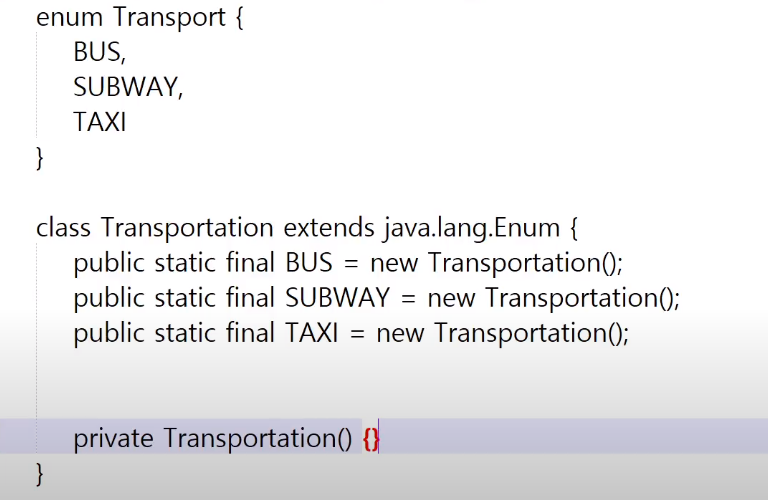 ㄴ Transportation클래스(enum클래스)도 클래스니까 기본생성자함수가 내부적으로 정의되어 있을 것이다