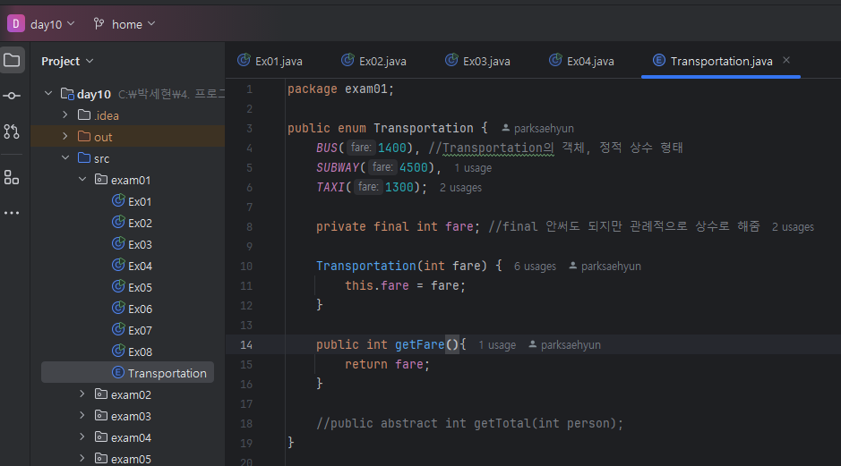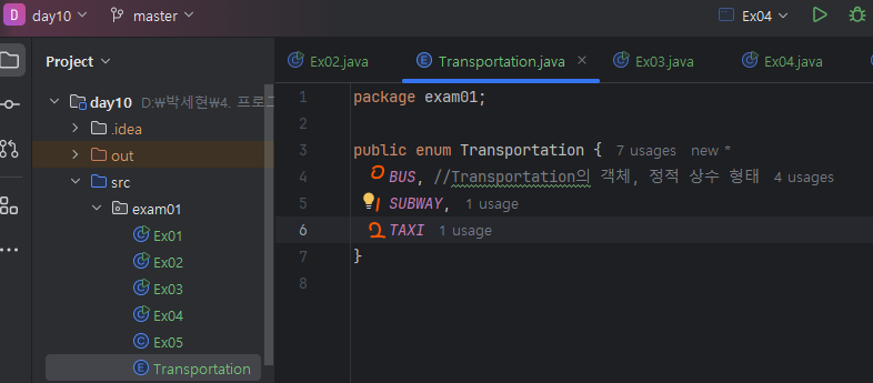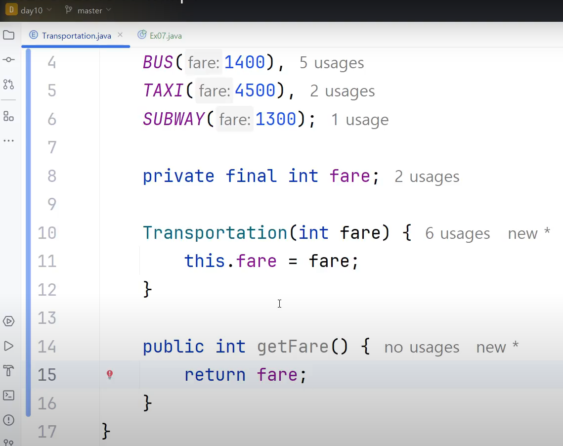 -> Transportation클래스(enum클래스)를 객체로 만들게 되면 상수로서 가치가 없어짐