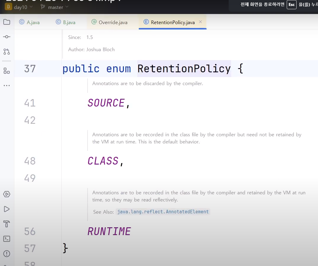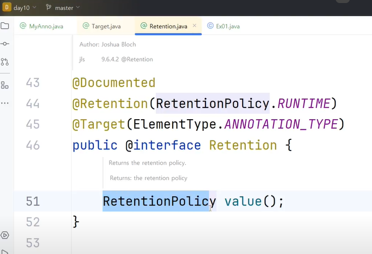 ↓ @Retention 컨트롤 + 마우스 왼쪽키