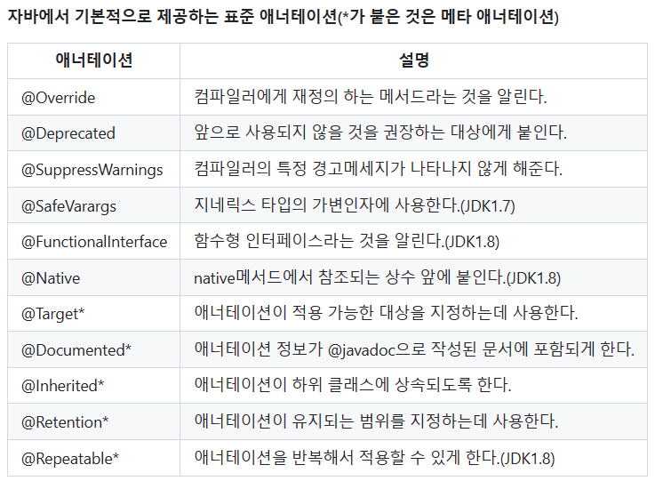 ㄴ 에노테이션도 클래스 정의의 일부(클래스의 구성요소) = 클래스 안에 에노테이션 정의함 = 클래스클래스 객체에서 에노테이션 확인가능