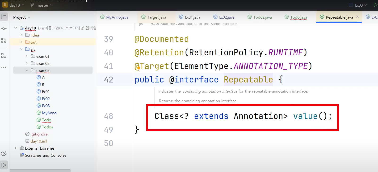 ㄴ @Repeatable : 매개변수가 클래스클래스