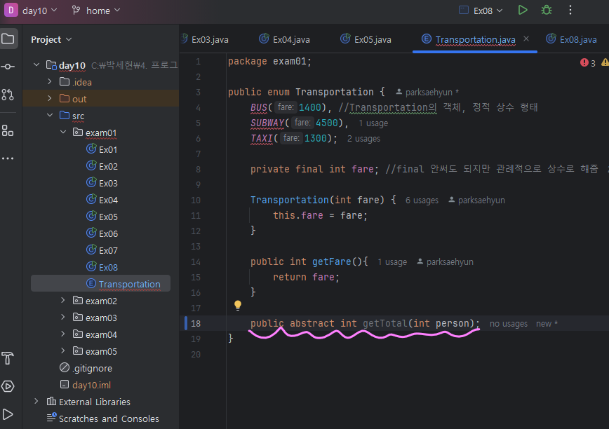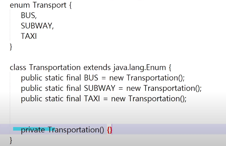 ㄴ 잉? 왜 Transportation클래스(enum클래스)에 기본생성자 함수호출이 안될까 = 왜 Transportation클래스(enum클래스)를 객체로 만들 수 없지?