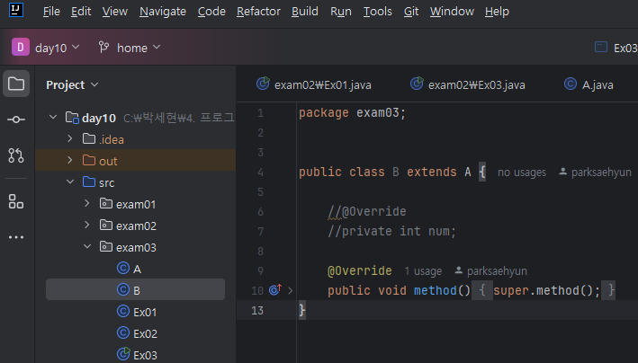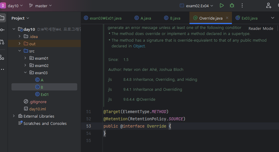 ↓ @Override 컨트롤 + 마우스 왼쪽키